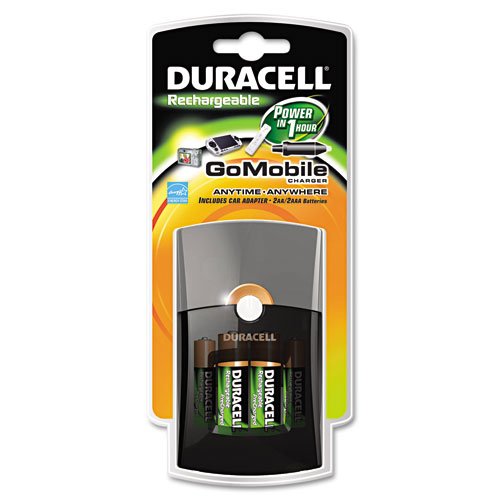 Duracell Products - Duracell - GoMobile Charger, 2 AA and AAA Pre-Charged Batteries, One Hour Charge - Sold As 1 Each - One-hour charge. - Charges four AA or AAA rechargeable batteries. - Fits in the car's cup holder. - Includes wall cord, and two AA and AAA pre-charged batteries. -